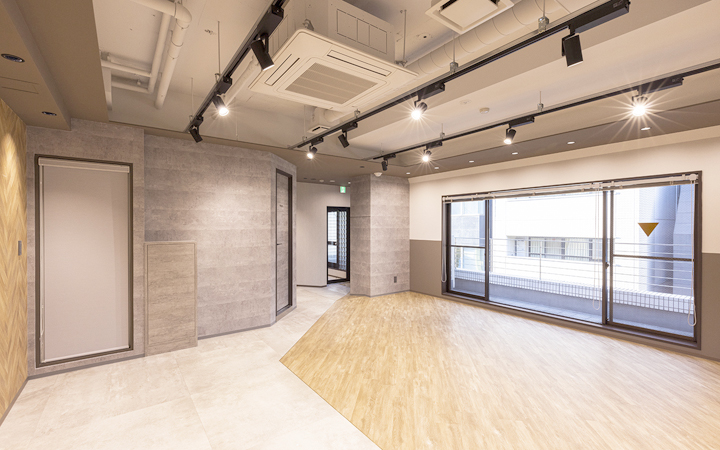 下のフロアは12名程の席が設置できるワークスペース、WEBブース1台