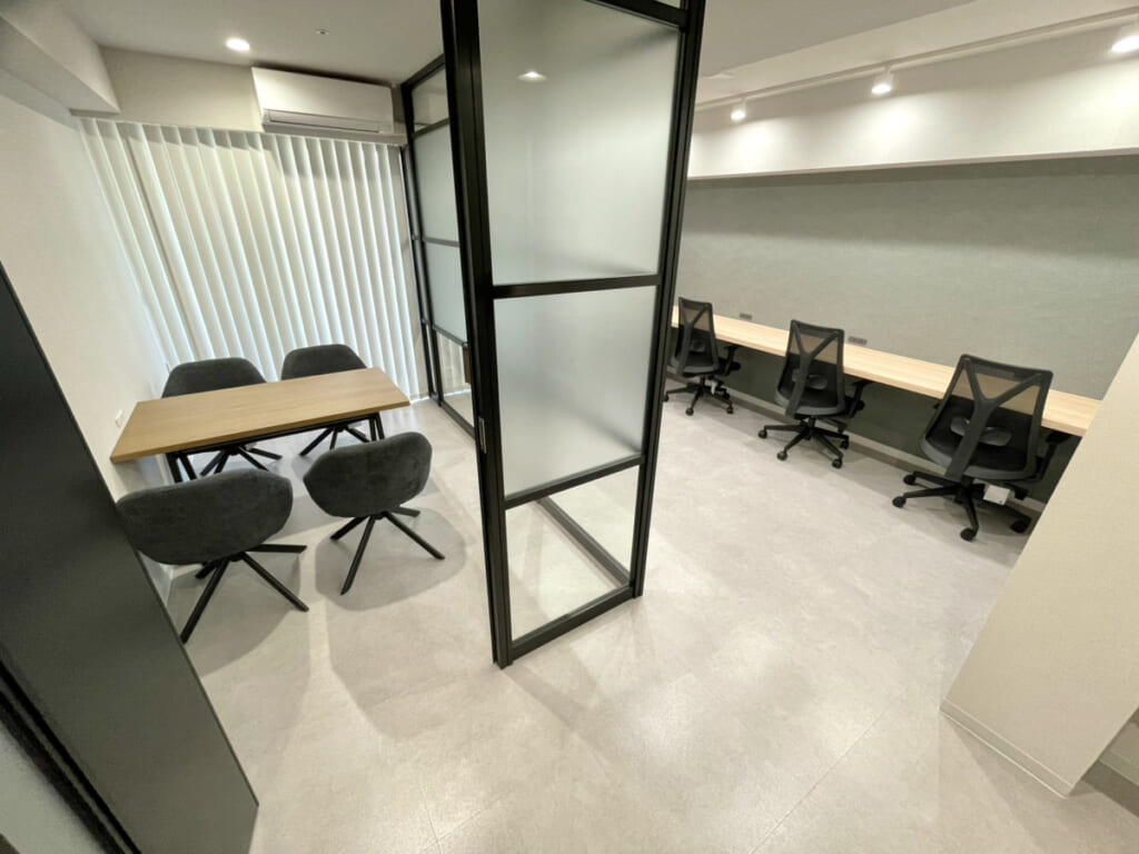 五反田駅徒歩5分!複数路線利用で少人数におススメのセットアップオフィス X 条件検索 エリアで探す すべて千代田区中央区港区新宿区渋谷区その他 坪数で探す すべて~30坪30坪~50坪50坪~70坪70坪~100坪100坪~ 人数で探す すべて~10人10人~20人20人~30人30人~50人50人~ こだわり条件で探す すべて駅から3分以内ラウンジスペース家具付き敷金3か月以下会議室2つ以上WEBブース天井スケルトン会議室1つ共用部ラウンジあり共用部会議室ありバルコニー屋上テラス男女別トイレリフレッシュスペースフルセットアップハーフセットアップカフェ風クリエイティブシックビンテージモダン個性的明るい落ち着いた解放感高級感駅から5分以内複数路線利用可能即入居敷金0相談可原状回復工事免除坪単価@20,000円以下居抜き築浅 もっと見る 検索 全体の様子 4名分のワークデスクを設置 4名用会議室が1室 会議室内