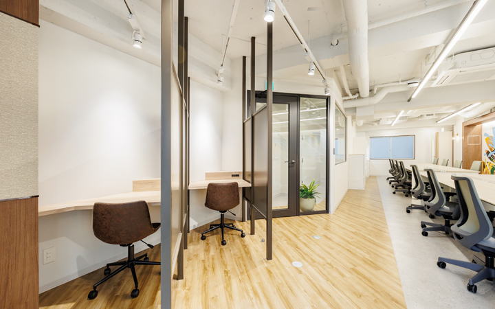 ソロワークに使えるハーフオープンのブース
