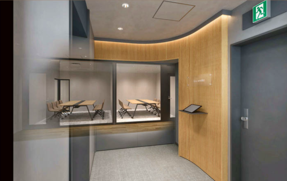 8名用会議室×2室、28名程で利用ができるワークスペース