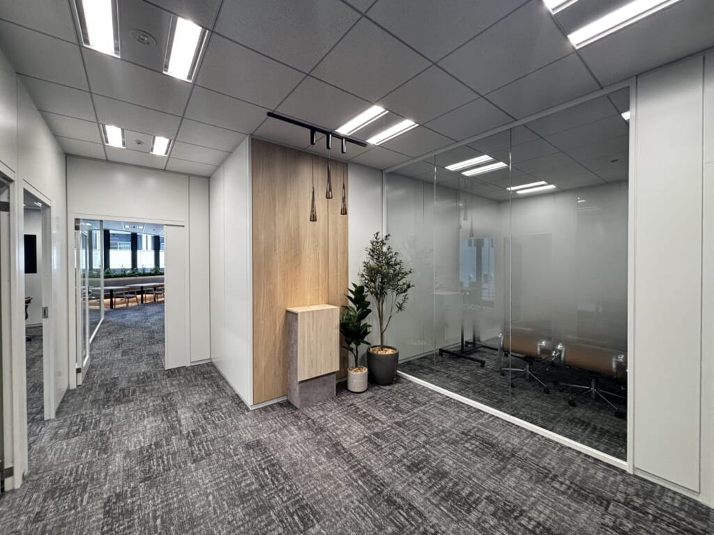 ワークスペース内・外、両方から行き来のできる6名用会議室