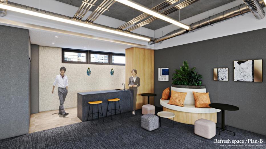 神保町駅徒歩4分!木目×ブラックでスタイリッシュな内装のセットアップオフィス X 条件検索 エリアで探す すべて千代田区中央区港区新宿区渋谷区品川区文京区その他 坪数で探す すべて~30坪30坪~50坪50坪~70坪70坪~100坪100坪~ 人数で探す すべて~10人10人~20人20人~30人30人~50人50人~ こだわり条件で探す すべて駅から3分以内ラウンジスペース家具付き敷金3か月以下会議室2つ以上WEBブース天井スケルトン会議室1つ共用部ラウンジあり共用部会議室ありバルコニー屋上テラス男女別トイレリフレッシュスペースフルセットアップハーフセットアップカフェ風クリエイティブシックビンテージモダン個性的明るい落ち着いた開放感高級感駅から5分以内複数路線利用可能即入居敷金0相談可原状回復工事免除坪単価@20,000円以下居抜き築浅 もっと見る 検索 エントランス 6×2室、10名用×1室の会議室を設置予定 リフレッシュスペースとなるパントリーエリア